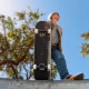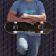 Monopatín foto abstracta de luz de edificios de una ciudad, una noche de verano. Emplee de una técnica de fotografía que da el efecto de una tela. Título: “Rastros luminosos”, Montreal, Quebec, el Canadá. María-Eva LaBadie fotógrafo