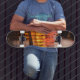 monopatín foto abstracta, de una silueta hombre que va a través de las fuentes coloreada la noche a Montreal. Título: “Siluetas”, Montreal, Quebec, el Canadá. María-Eva LaBadie