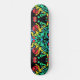 Un monopatín realmente fresco con un diseño abstracto en los colores del fuego y del agua en un fondo negro.