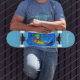 Nuestro divertido lagarto surfeando con tiburones. Añade tu propio texto para hacerlo especial.