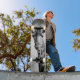 Skateboard Giraffe en un paisaje urbano
