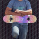 Moderno arcoiris enciende patineta con nombre de purpurina