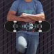 Calavera, rosas rojas y diseño de patineta de serpiente.