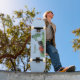 Una extraña rana verde cortando el césped al estilo personalizado.