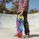 Esta de una especie de patrón de superficie de patineta está lista para su toque personal. El diseño es un audaz patrón giratorio de todos los colores en un lujoso arco iris tintado. Simplemente edite su nombre u otro texto y elija sus otras opciones sólo para el deck o tablero completo y tamaño en el menú desplegable.