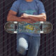 Un design sportif et épuré pour ce skateboard imprimé d'un graphitti sur une planche de bois usée peinte en bleu , des lignes semis efficaces. Le cadeau idéal pour tous les skateboarders fan de sports extrêmes.