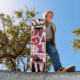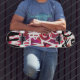 Grafiti de estilo retro de los años 80 graba gráficos en patinetas.