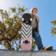 Elegante, elegante y sofisticado zigzag (chevron) de color gris y blanco con manchas de color rosa y negro. Regalo moderno y moderno, perfecto para el amante del zigzag en tu vida.