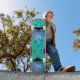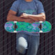 Skateboard Hibiscus psicodélico retro verde y rosa caliente