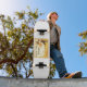 Nada como el brillo del sol y una brisa fresca sobre el océano que crea algunas ondas masivas para practicar surf. Es definitivamente hora para el hittin las ondas. Atracción de una persona que practica surf en una playa sunlit con las palmeras.