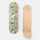 Skateboard Honeycomb floral con abejas amarillas y Verde azul