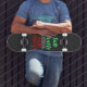 Skateboard Hustle lateral vs Grind Dancing Neon Green Text