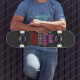 Skateboard Hustle lateral vs Grind Dancing Neon Pink Textos