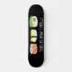 Un ilustracion de sushi divertido y bonito para esta patineta. Con las palabras "así es como rollo". El estilo kawaii (lindo) dibujando en negro.