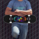 Skateboard Infinidad vibrante con mariposa arco iris sobre ne
