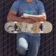 Skateboard Japonés orientales sentados admirando la vista Fuj