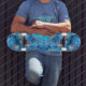 arte acuarela de un estanque de peces con gotas de lluvia que caen sobre el agua en una patineta
