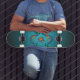Skateboard Kokopelli con sol Verde azulado Ombre