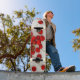 Skateboard Las cerezas rojas con luz natural yacen en blanco