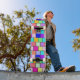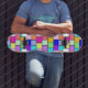 tablón de patinaje antiguo con motivos de ladrillo multicolor
