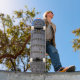 Skateboard Leaning Tower at Dusk