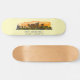 Cubierta de skateboard con silueta de perfil de la ciudad de Fort Lauderdale con coordenadas de latitud y longitud y acuarela al atardecer