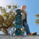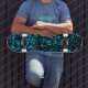 Un Skateboard con un diseño abstracto moderno compuesto de líneas vectoriales colocadas al azar que crean una interesante composición abstracta que recuerda a algún tipo de estructura o red.