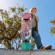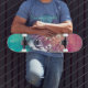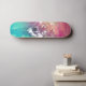 Skateboard Lobo abstracto artístico de la acuarela rosada de