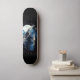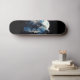La patineta presenta un diseño visual de un lobo aullando bajo la luz de la luna. El diseño evoca la imagen de un lobo en una postura característica de aullido, con la luna brillando en el fondo. Este diseño se ha plasmado de manera artística en la superficie de la patineta, utilizando colores y detalles para capturar la escena nocturna que transmite una sensación de misterio o naturaleza salvaje. La combinación de la figura del lobo y la luz de la luna en la patineta crea un elemento visual atractivo y distintivo.