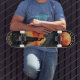 Este diseño de skateboard captura la esencia de la naturaleza salvaje con un lobo solitario que aullaba sobre un pico accidentado, silueta contra un cielo encendido. Con una paleta de colores dramáticos de azul oscuro, naranjas intensos y sombras oscuras, esta pieza aporta un sentimiento nostálgico y retro de mediados de siglo, evocando libertad, fuerza y el indomable espíritu de la naturaleza. Inspirada en los afiches de viaje de los años 50, esta obra atrae a los patinadores con un alma aventurera, conectando con la belleza intemporal de lo salvaje. Ideal para los que tienen un ambiente independiente y natural.