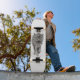 Skateboard Lobo negro enojado en la nieve, invierno salvaje