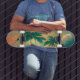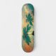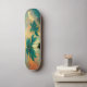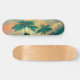 Se trata de una fantástica vista de las acuarelas tropicales en tonos turquesa y naranja que representa el cielo, las nubes, el mar, las palmeras durante el amanecer.