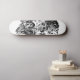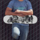Versión de skateboard de la obra de arte "Meal-Czech" que muestra figuras y objetos abstractos en blanco y negro. No hay significado para buscar, pero se puede encontrar en cada rincón.