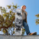 Calavera rota en blanco y negro con una vibrante atmósfera de Halloween. Los contrastes audaces y los detalles rotos añaden una atmósfera inquietante y tenebrosa.