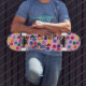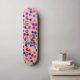 Skateboard mit bunten Punkten und rosa Hintergrund