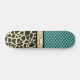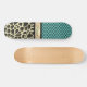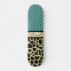 En este elegante skateboard, un elegante patrón de quatrefoil sobre un telón de fondo turquesa, junto con una cinta dorada, donde se puede personalizar para hacerlo único y más abajo, un diseño de jirafa exótica que crea vibraciones de moda de moda.