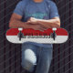 Skateboard modern white and red personalized name