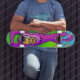 Nuestro patinador "Monkey Business" muestra un mono morado colgando de su cola. Esta patineta es personalizable y viene en varios tamaños. ¡Son las cubiertas de arce de roca dura de mejor calidad! Un proceso de imprenta sin parangón y pendiente de patente hace que este sea el mejor skateboard disponible en el mundo.