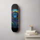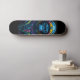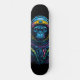 ilustracion de skateboard de un mono con auriculares al estilo neón, luz negra, hecho por AI
