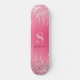 Este elegante skateboard presenta goteos en purpurina rosa sobre un suave fondo rosado. Personalice su nombre inicial en un guión de moda. Fácil de personalizar haciendo clic en "Personalizar".