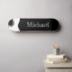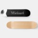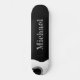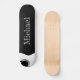 Patineta monograma, con una imagen de guitarra en blanco y negro sobre un fondo negro. Con letras blancas, puedes personalizar con tu propia información. ¡Ideal para añadir un poco de rock y rollo a tu pensión especial!