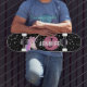 Skateboard Monograma rosa negro con unicornio arcoiris person
