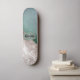 Masa de mármol rosa a lo largo de un diseño verde de minty purpurinoso donde en el centro hay una etiqueta donde se puede personalizar. Moda de vibraciones ostentosas.