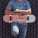 Skateboard Monogramación De Batik Rosa Ruddy Y Acuarela Gris