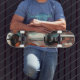 Montaje de guitarra: una representación abstracta que incluye numerosas guitarras eléctricas, incluyendo una variedad de guitarras coloreadas en un fondo de color abstracto, todas alineadas verticalmente.