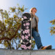Florecen cerezos japoneses de color rosa con un fondo negro. Un lindo skateboard para ella/para chicas adolescentes.