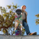 This cool looking Dragon is riding his motorcycle fast and carefree on the open highway.