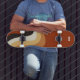Skateboard Naranja Retro 70 Resumen Monograma Hippie Groovy