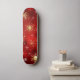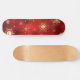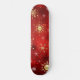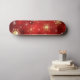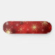 Skateboard Navidades Copos de nieve dorados con fondo rojo