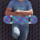 Skateboard Neon Turquoise & Purple Stripes